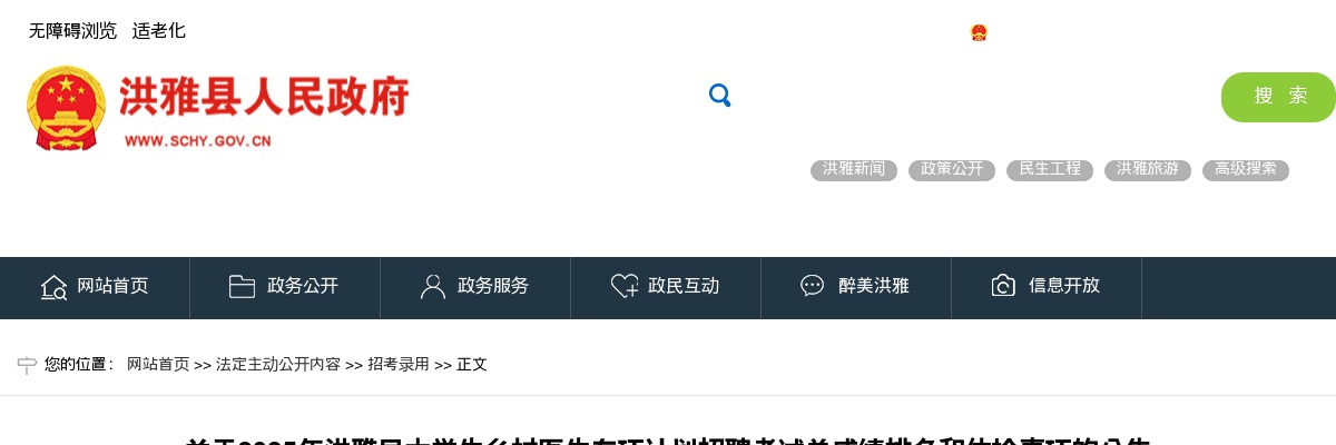 原标题:关于2025年洪雅县大学生乡村医生专项计划招聘考试总成绩排名和体检事项的公告