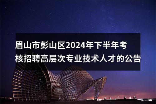原标题:眉山市彭山区2024年下半年考核招聘高层次专业技术人才的公告