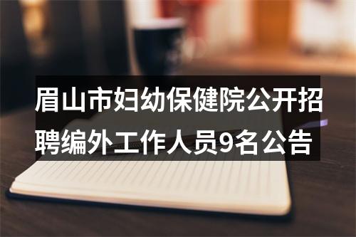 因业务发展需要,眉山市妇幼保健院拟面向社会公开招聘9名编外人员,现将有关事项公告如下: