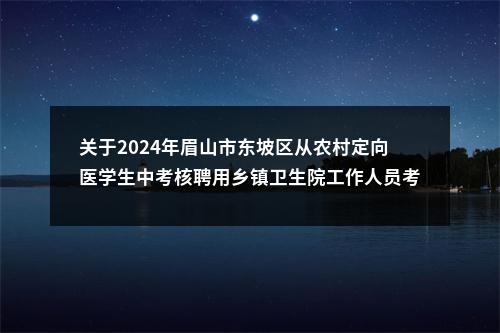 原标题:关于2024年眉山市东坡区从农村定向医学生中考核聘用乡镇卫生院工作人员考核成绩及排名的公告