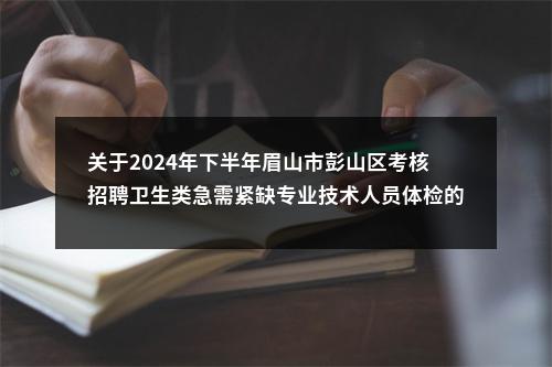 原标题:关于2024年下半年眉山市彭山区考核招聘卫生类急需紧缺专业技术人员体检的公告